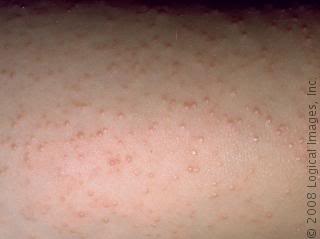 If you have clusters of small painless bumps on your skin you may be suffering from keratosis pilaris. This condition often occurs on the cheeks, buttocks, thighs, and on the back of the arms and is often mistaken for a rash, acne, or even goose bumps. Some people refer to this condition as “chicken skin”. It is generally not irritating or itchy so that is often how it is distinguished from actually being a rash or eczema.